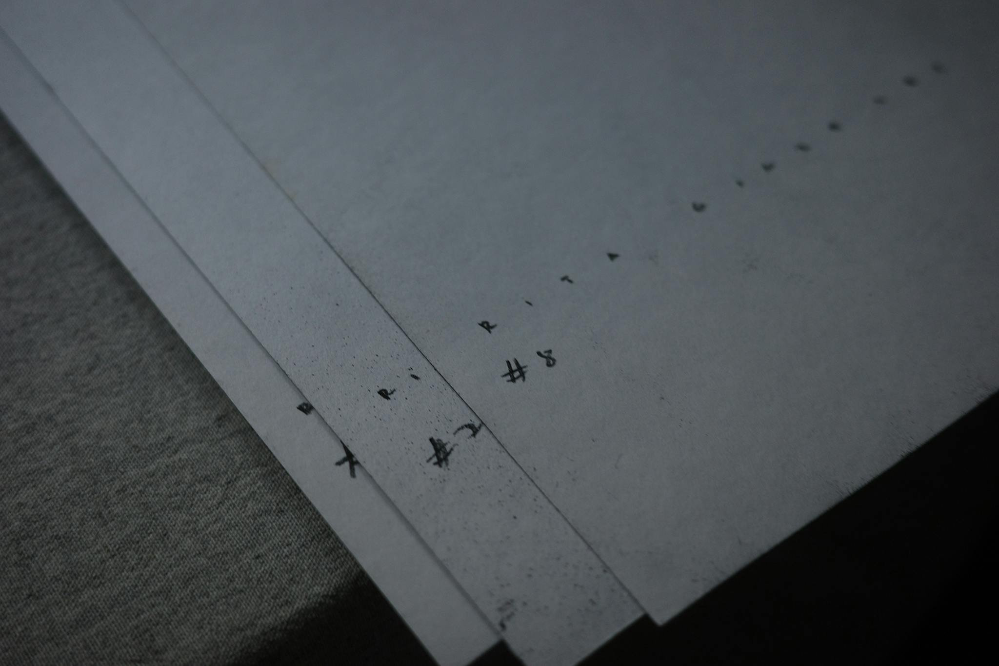 A series of prints—eight impressions of found natural objects. Each is unique and exists as a gesture, striving to hold on to a fleeting moment.